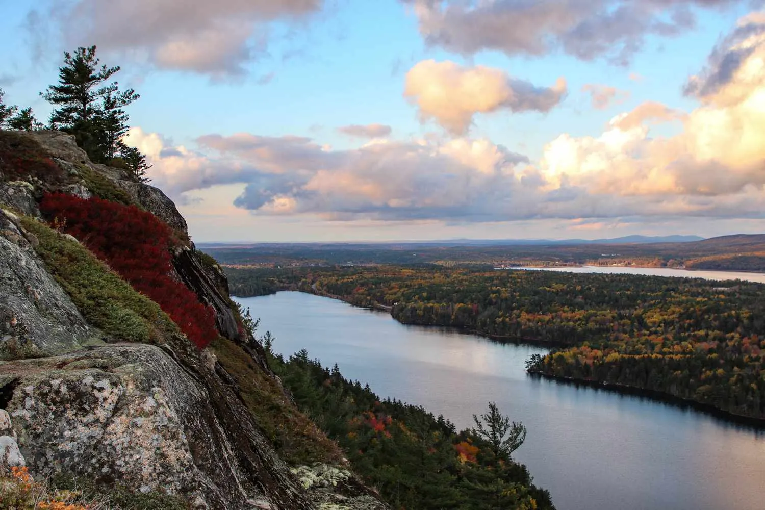 The first hints of fall foliage appear by mid-September, with red maples in wetland areas often turning first. These splashes of color against the predominantly green landscape create beautiful contrasts for photography. The understory plants and blueberry bushes begin turning crimson, adding rich color to hiking trails.